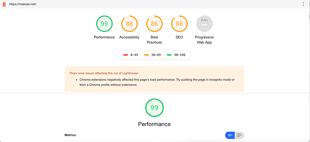 Here is an example of running Lighthouse auditing tool in Google Chrome.